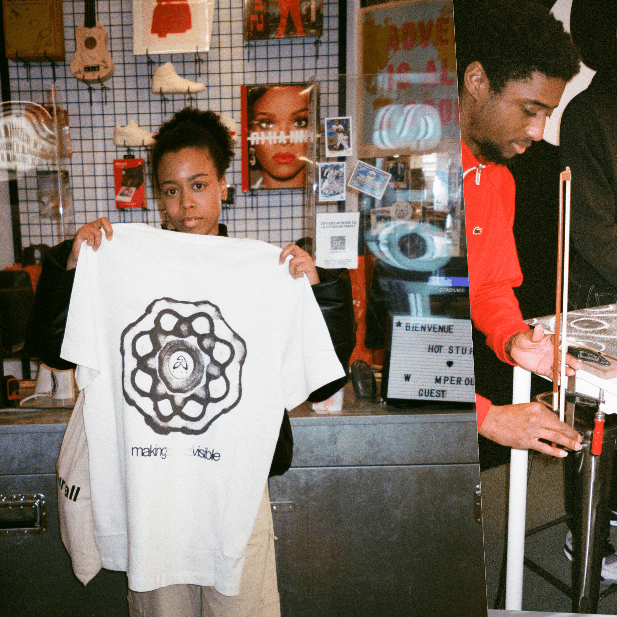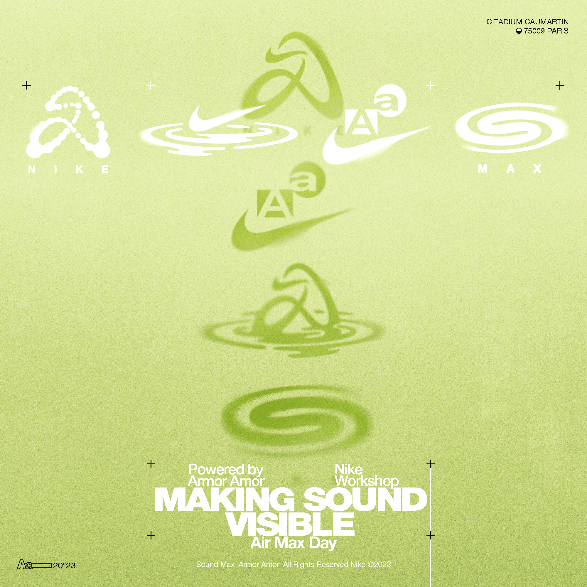 SoundMax est un workshop s’étant déroulé à Citadium, dans le cadre du Air Max Day 2023. Fruit d’une collaboration entre Nike et le studio créatif Armor Amor, l’atelier a consisté en la création de t-shirts personnalisés basés sur des expérimentations de cymatique.