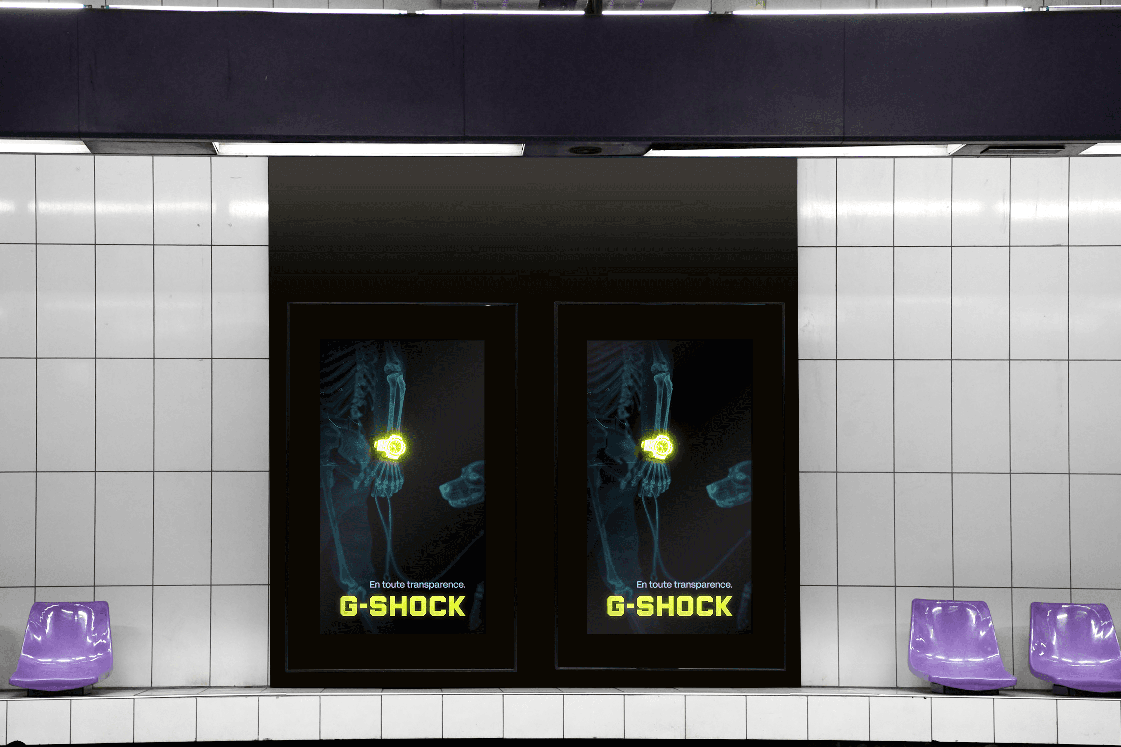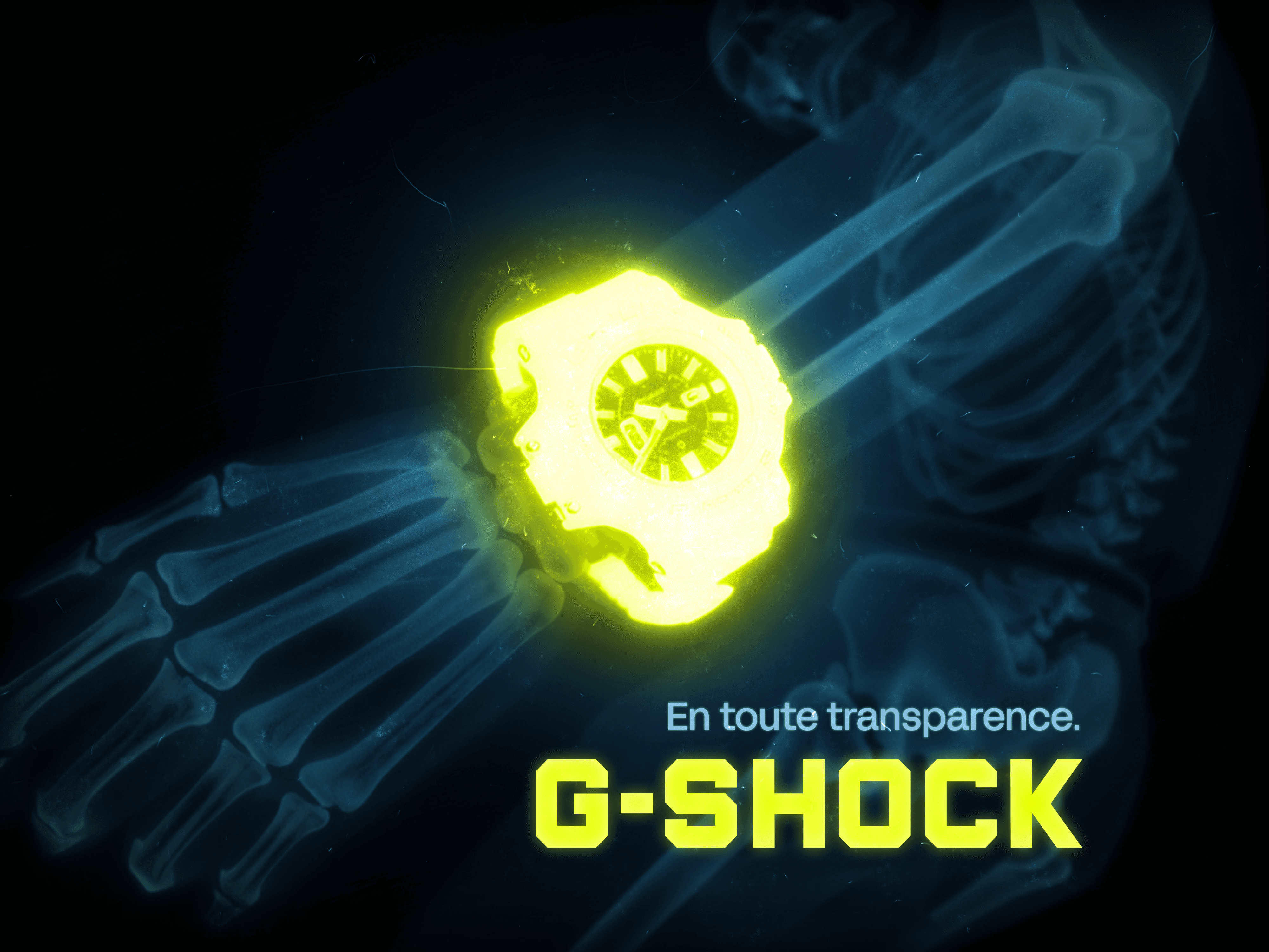 G-Shock est le point de départ d’un projet fictif explorant la question de l’authenticité à travers une campagne centrée sur la lutte contre les contrefaçons. J’ai imaginé un langage visuel basé sur l’esthétique du rayon-X, révélant le squelette humain tout en laissant la montre intacte, comme un symbole d’authenticité absolue.